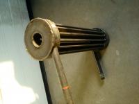 witam....kolego Piotrze może nie doczytałeś ,piec stoi w piwnicy pod garażem-warsztatem.Ogrzewa dom 130m i właśnie ten garaż 50m, w domu jest wymiennik ciepła,temp.jaka dochodzi z tego trociniaka to max 70 stp. uzyskuję to z tej sześciokątnej nagrzewnicy którą widać na zdięciach,uważam że temp.w piecu jest tak duża że należy dołożyć jeszcze jakiś odbiornik ciepła i zrobiłem, będzie wstawiony do pieca...patrz zdięcia,dwa pierścieni zamknięte połączone profilem zamkniętym 40x10 ścianka 1.5mm.Te otwory w pierścieniach to nie do czyszczenia-w te otwory wejdzie rura przed zasypaniem trociną.Teraz są za duże mrozy żeby kombinować,ale w tym sezonie jeszcze to zrobię.Jeśli ktoś ma pytania chętnie odpowiem.