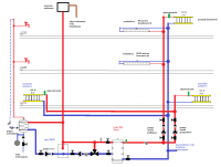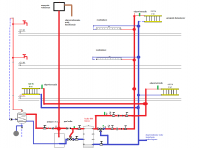 Przymierzam się do odnowienia a w sumie do stworzenia na nowo całej instalacji w domu remontowanym. Dom juz ocieplony według projektu przyszła kolej na instalację c.o i c.w.u . Dom posiada piwnice ( znajduje się tam kotłownia) parter , piętro i dobudowane poddasze. Parter i piętro powierzchnia użytkowa koło 160m^2 łącznie i doszło poddasze około 60m^2. Piec 25KW -palimy drewnem Czytając forum, przeglądając tematy i schematy o instalacji c.o c.w.u stworzyłem własny schemat i liczę na podpowiedzi i ewentualne korekty. Opis: -parter ogrzewanie grzejniki żeliwne- zostaną wymienione wszystkie rury i odpowiednio poprowadzone bo stara instalacja jest zrobiona z elementów jakie były kiedyś pod ręką. -piętro ogrzewanie podłogowe na rozdzielaczu z układem mieszającym do tego chcę zamontować termostaty pokojowe. -poddasze podobnie jak piętro. Moje pytania: 1. Czy schemat instalacji jest poprawny czy coś zmienić, dodatkowo przed każdą pompa filtr będzie zamontowany na schemacie nie ma ich zaznaczonych? 2.Instalacja w miedzi - piony 28mm, doprowadzenie wody do grzejników 15mm Czy takie grubości rur powinny zdać egzamin ? 3. Zastanawiałem się nad buforem ciepła np 800 litrów tylko nie wiem gdzie go wpiąć? 4. Czy przy wysokości piony około 7 metrów czy koniecznie trzeba wykorzystać pompę o takich parametrach podnoszenia czy wystarczy słabszy model do wspomagania obiegu (pion)? pozdrawiam Paweł
