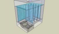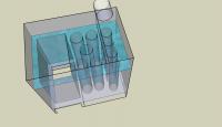 No to w takim razie trzeba zrobić wymiennik i do niego dostawiona komora zasypowa. Co powiecie o takim pomyśle na wymiennik... Jak widać po lewej komora dopalająca, gdzie długi płomień z drewna ma szanse się dopalić.Kanał ten wyłożony będzie szamotem w zależności od potrzeb 1/3 , 1/2 lub cała wysokość. Od dołu miejsce na dyszę-palnik i powietrze wtórne. Płomiń idze do góry i dopala się (mam nadzieję że...) jeszcze przed sufitem. I wtedy 5-cioma płomieniówkami i w dół, do popielnika. Tam nawrotka i 4-rema płomieniówkami w górę do czopucha i w komin. Finito. Pamiętać należy że kociołek ma mieć TYLKO 5kW. Wymiary wymiennika to około 50x50x25 (wys/sze/ głę) Płomieniówki z rury 1cal. Palnik Ten palniczek wykonany na zasadzie zwężki Venturi'ego, w środkowej części podawanie powietrza wtórnego do gorących spalin. Całość wykonana z żarobetonu. A tu usytuowanie palnika w wymienniku... A komora zasypowa z paleniskiem i rusztami tutaj... Ruszta żeliwne nieco skośne,ze spadem w kierunku wylotu spalin. Sam wylot zabezpieczony przed dostaniem się grubszych kawałków opału tzw. płotkiem. Komora zasypowa w całości z szamotu,zaizolowana wełną i blachą. Teraz wystarczy wszystko ładnie poskładać do ... w całość! Bardzo proszę o komentarze w celu znalezienia słabych punktów konstrukcji! -