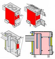 Wnioski nasuwające się po analizie w/w materiałów: -komora załadowcza dla drewna (polan) musi mieć zupełnie inny kształt niż dla węgla i np.zrębków -dla węgla dysza (palnik) umiejscowiona w bocznej lub tylniej ściance, nieco nad rusztami (dla drewna może być w dnie komory jak w tych pieco-kominkach) bo drewno zostawia miej popiołu i jest on lżejszy -kociołek na drewno nie musi posiadać mechanizmu odpopielania, dla węglowego raczej już obowiązkowo -