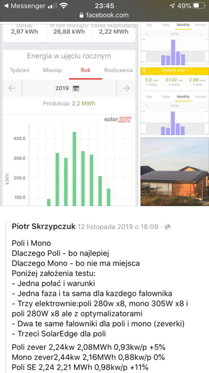ocena ofert na instalacje FVmaniek76 odpowiedział(a) na boru temat w Wytwarzanie energii elektrycznej na cele grzewcze (i nie tylko) Przecież wyżej dałem test że solar edge wyszedł lepiej na południowym dachu. Juz ktoś robił testy