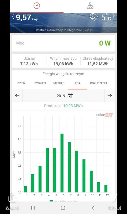 ocena ofert na instalacje FVmaniek76 odpowiedział(a) na boru temat w Wytwarzanie energii elektrycznej na cele grzewcze (i nie tylko) Instalacja wschód +południe + zachód. Na froniusie nie ma szans takiego uzysku. Uzysk z wczoraj tj. 2 luty