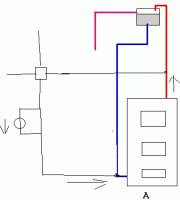 Jak do takiego schematu podłączyć pion do naczynia wzbiorczego?