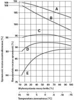 Witam, Znalazłem jeszcze taki ciekawy wykres, w kontekście przewymiarowania kotła gazowego (czyli zapotrzebowanie domku np. na poziomie 18 kW przy - 20* C, zakup kotła 24 kW z nadmiarem mocy). Chciałbym prosić o opinię do poniższej grafiki i opisu, który znalazłem w Internecie, a samo pytanie dotyczy przewymiarowania kotła, czyli nadwyżki jego mocy w stosunku do zapotrzebowania mocy. Z grafiki wynika, iż kocioł pracujący z najniższą możliwą mocą (własną) osiąga większą sprawność niż ten, który pracowałby na ?wyższych mocach?, czyli zbliżających się do 100%. W przypadku zapotrzebowania budynku na moc 18 kW w mojej ocenie lepiej będzie zastosować kocioł który będzie miał nadwyżkę mocy np. 24 kW i pracował z mocą 75% nic kocioł 18 kW pracujący z mocą 100% - mam rację czy gadam głupoty ;-) Sprawność Kotły kondensacyjne pracują z wyższą sprawnością od tradycyjnych, czyli lepiej wykorzystują paliwo zapewniając niższe koszty ogrzewania. Osiągają sprawność do 109%, podczas gdy tradycyjne tylko do 90% (92%). Sprawność różnych typów kotłów w zależności od temperatury zewnętrznej i obciążenia kotła (mocy grzewczej). A ? gazowy kocioł kondensacyjny w instalacji zaprojektowanej na temperaturę wody grzewczej 40/30°C B ? gazowy kocioł kondensacyjny w instalacji zaprojektowanej na temperaturę wody grzewczej 75/60°C C ? kocioł tradycyjny (niekondensacyjny) bez wymaganej minimalnej temperatury wody grzewczej D ? kocioł tradycyjny z koniecznością utrzymywania minimalnej temperatury wody grzewczej w kotle 40°C E ? kocioł grzewczy z 1974 roku ? stała wysoka temperatura wody kotłowej 75°C- 36 odpowiedzi