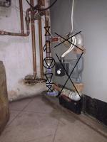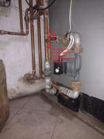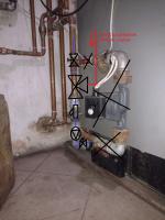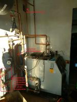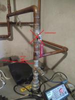 Pompa pełniąca rolę ochrony kotła nie jest na powrocie,jest na bypasie spinającym zasilanie z powrotem a tym samym zasysa z zasilania.