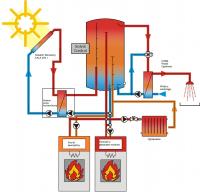 Wrzucam bardzo uproszczone schematy instalacji opartych o bufor SolvisMax: Bufor z kolektorami słonecznymi i kotłem zewnętrznym: Bufor z kolektorami słonecznymi i kominkiem z płaszczem wodnym: Bufor z kolektorami , z kominkiem z płaszczem wodnym oraz zew. kotłem: Bufor ( tzw. SolvisMaxSolo ) czyli bez wew. wymiennika solarnego - solarna stacja wymiennikowa - kolektory słoneczne, zew.kocioł, kominek PW: Pozdrawiam Paweł -