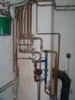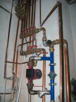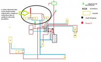 Witam wszystkich forumowiczów i proszę o pomoc w ocenie instalacji już zrobionej i problemie zapowietrzania się grzejników o nr 1,2.3 i sporadycznie grzejnik nr4. Z góry przepraszam za moje zdolności artystyczne, do rysunku dołączam zdjęcia jak to wygląda. Praktycznie co 2 dzien. musze odpowietrzacz grzejniki 1,2,3 po wyłączeniu pompy słychach przelewanie się wody (bulgotanie) nieraz jest to do razu nieraz po kilku godz. Zacznę wiec od budowy jak to wygląda od strony technicznej: Grzejniki posiadają zaw. termostatyczne ale bez głowic są lekko skryzowane. -cała instalacja jest wyposażona w manometr na którym nie zaobserwowałem ubytków wody. -grzejnik 8,9,10 są na piętrze i są jako pierwszy oraz drugi na wyjściu rozdzielacza ale są przymknięte na 90% zasilanie i powód idą w podłodze. -co do reszty grzejników to zasilanie idzie górą pod sufitem natomiast wraca podłogą (wykorzystana stara rura stalowa 5/4 która to już dawno temu była zalana w posadzce). -zasilanie do grzejników jest w miedzi oprócz powrotu w stali ale tylko na parterze na piętrze jest już w miedzi. Instalacja jest podobna do grawitacyjnej ale jest to instalacja pompowa ze względu na przekrój rur. - bojler (CWU) jest na razie odłączony wiec go nie bierzemy pod uwagę. - cała instalacja na oko wydaje się być szczelna nic nigdzie nie kapie ani się nie sączy. -trzecie wyjście z rozdzielacza to właśnie zapowietrzające się grzejniki 1,2,w pokoju i 3 w korytarzu ale posiadają zrobiony pion powyżej wszystkich grzejników z odpowietrznikiem automatycznym. -czwarte wyjście również z pionem i z odpowietrz automatycznym to pokój w którym od czasu do czasu zapowietrza się grzejnik nr 4 . - z boku rozdzielacza wyjście na CWU ale na razie zamknięte. Naczynie wzbiorcze jakieś 2,5 metra powyżej ostatnich grzejników na piętrze z rurą w średnicy 15mm (wiem ze to błąd) i tu moje kolejne pytanie ? Czy zwiększając średnice rury zwiększę ciśnienie w sieci CO ze względu na większą powierzchnie naporu słupa wody ? - ponadto instalacje zabezpieczyłem dodatkowo w zawór bezp. 1,5bara zaraz za rura wzrosną do naczynia wzbiorczego. -Cała instalacja jest stopniowana średnicami rur 28mm przy piecu cześć gałązek 22mm cześć 18mm i tak dalej. -Pompa to 6 na każdym biegu (Ustawiona na I) radzi sobie dobrze nie zaobserwowałem problemów w równomiernym rozprowadzeniu ciepła po instalacji. - Piec to SAS 17KW dolniak powierzchnia do ogrzewania na razie to ponad 130 mer później 200. Cześć grzejników parter aluminium ,piętro żeliwo. Ogólna ilość wody w układzie gdzieś miedzy 165lit a 180 lit wody Podsumowując -proszę o rady co trza było by zmienić ,przerobić żeby nie biegać ciągle z odpowietrznikiem który śni mi się już po nocach - i czy czasem ciśnienie w instalacji nie jest za małe ? - instalacja chodzi już 3 mies. i nie możliwe żeby gdzieś było jeszcze powietrze po takiej ilości odpowietrzania - piony na zdjęciu są krótkie i z ręcznymi odpowietrznikami co zostało już zmienione ale bez wyraźnej poprawy.