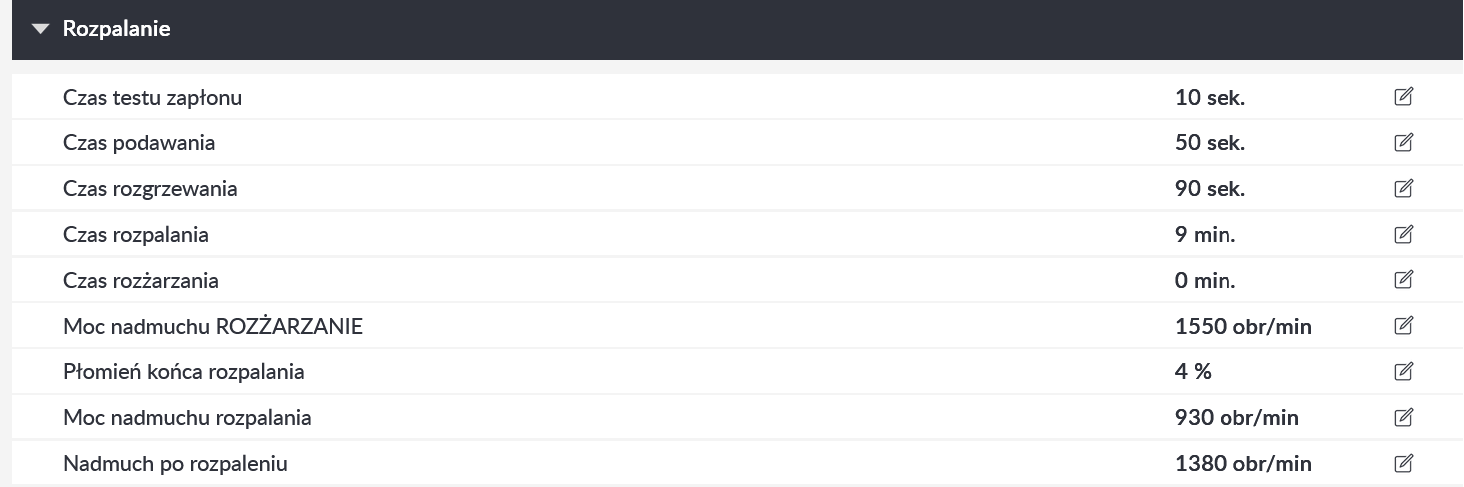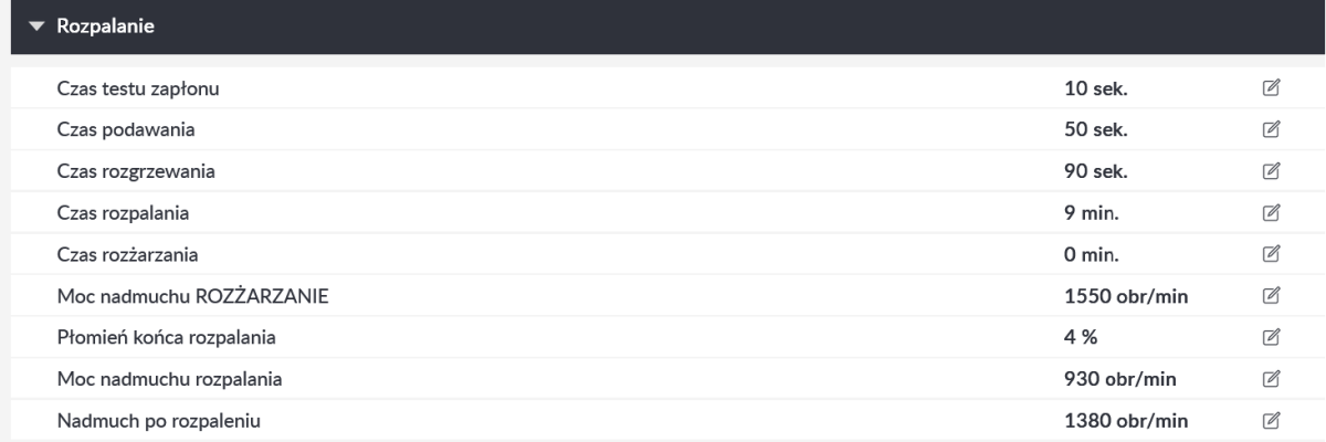 rozpalanie - czas w którym palnik czeka na płomień. Ten czas zaczyna sie w momencie ruszenia czasu podawania a kończy gdy pojawi sie płomień, jesli nie, to dodaje kolejna dawkę pelletu mniejsza niz za pierwszym razem, jesli nie da rady, to trzecią a pózniej komunikat błąd rozpalania