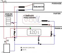 Wymiennik 2-płaszcz 120l zasilany jak na wcześniejszym obrazku przez rurę Cu 22 przed zaworem 4-dr. a na powrocie pompa z tym że boiler nie jest załączany. Ale chyba mnie olśniło- na powrocie do pieca z zaworu 4-dr zamontowałem zawór zwrotny zwykły który na pewno nie przepuści obiegu grawitacyjnego, ale czy to pompa nie powinna pchać tej wody a nie grawitacja?