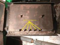 U mnie się sprawdza. Jak widać na zdjęciach wyloty powietrza górnej klapy znajdują się na wprost dolnej szpary pod kierownicą ciągu. Dodatkowo umieściłem śrubę, żeby ta szpara była szersza. Przed wymianą drzwiczek paliłem od góry na wentylatorze ale ustawiałem opcję: minimalne obroty wentylatora na 5% lub 10%, żeby cały czas dostarczać powietrze (po osiągnięciu temperatury zadanej)- ale tu trzeba sprawdzić, żeby ci nie podbijało temperatury i testować na mniejszej ilości węgla. Efekty też miałem dobre bo smoła się ładnie wypaliła. Powodzenia Arek. -