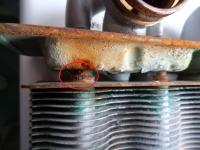 Mam problem z piecem Beretta Ciao II,pojawiła się nieszczelność w wymienniku ciepła,w miejscu łączenia elementów wymiennika (zaznaczyłem czerwonym kółkiem na zdjęciu),w jeszcze jednym miejscu jest trochę rdzy i tam też może być nieszczelność.