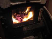 Palenie od góry w tym kociołku to sama przyjemność. Oto pełny zasyp po 20 min od rozpalenia pięknie rumieni się dzięki KPW. Na tym zasypie przy -10 to 12 do 14 godzin. Co ciekawe popiół jest tak wypalony wręcz do białości i tak lekki, że nie można go wybrać bez unoszenia kłębów "mącznej zadymki". Zaskakuje mnie również, że udało mi się tak wyregulować kociołek, że idealnie trzyma na zadanej temperaturze bez względu czy pompa pracuje, czy tez jest wyłączona.