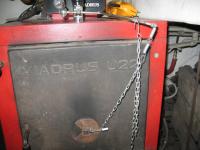 14. Witam. Na początek każdemu polecam dokładną lekturę: http://forum.murator...9gla-kamiennego i tutaj uporządkowane informacje: http://log.treter.pl...lanie-spis.html Palę 3 sezon w Viadrusie U22 w wersji D - 4 człony. Kupiony był z wentylatorem i sterownikiem Tatarek. Po próbach palenia miałem (porażka totalna ) i różnych eksperymentach związanych z udoskonalaniem konstrukcji zrobiłem do niego widoczne na zdjęciach dławiki wkładane w kanały wylotowe spalin i "półkę" z blachy. Z półki jednak zrezygnowałem bo zatykała dopływ powietrza do paleniska. Po przeczytaniu tematów w internecie o paleniu węglem "od góry" wypraktykowałem to u siebie i uważam, że jest to najlepsze rozwiązanie do viaderka :) Opiszę palenie "po mojemu", może komuś się przyda a może ktoś mi doradzi lepsze rozwiązanie. A więc po kolei: 1. wywaliłem wentylator z klapą (ten montowany seryjnie ma o wiele za dużą wydajność i wypychał ogromne ilości gorących spalin w komin, o marnotrawnym zużyciu prądu nie wspomnę) 2. zamontowałem miarkownik ciągu, 3. z blachy 2mm dorobiłem lżejszą klapę (miarkownik lepiej reaguje z lżejszą klapą, orginalna jest zdecydowanie za ciężka), 4. zrobiłem dławiki (po ich założeniu temperatura na kotle rośnie duuużo szybciej, bo wymuszają obieg spalin po żeberkach). Teraz rozpalanie po kolei: 1. wiadro węgla (3 łopatki, nie ważyłem ale jakieś 10-12kg), w duuuuże mrozy wsad jest trochę większy, 2. na to kilka grubszych kawałków drewna, 3. trochę tektury falistej (najlepsza bo elegancko się spala), 4. kilka drobnych kawałków drewna. Zapalenie takiego wkładu to żaden problem jeśli się spryska tekturę ropą. W czasie rozpalania klapka połączona z miarkownikiem jest uchylona wg ustawienia miarkownika. Kółko w górnych drzwiach otwieram na ¼. Szyber ustawiam tak, że wystaje jakieś 5-6 cm liczone od blachy do gałki, ale to już kwestia jaki jest ciąg w kominie (jakoś nie lubię gdy strasznie huczy w kotle, dlatego tak ustawiam, żeby się ładnie paliło ale nie gwałtownie, może to błąd ale jeszcze poeksperymentować muszę). Po całkowitym rozpaleniu miarkownik zamyka klapę dolną a kółko zostawiam uchylone na ok. ¾ obserwując płomienie tak, żeby nie ?szalały?. Czas osiągnięcia temperatury zadanej zależy od temperatury początkowej, instalacji, zładu, itp., itd., wiadomo. Jedno jest pewne ? nie może się za szybko rozpalić bo wtedy rozpala się za duża ilość cennego węglaJ Taki zasyp pali się łagodnie ok. 10 godzin, zależy jak się rozpali. Po wypaleniu wnętrze Viadruska jest prawie białe. Do rozpalania nie może też być za dużo drewna bo za bardzo się rozpali węgiel i sadza oblepi wymiennik i dławiki. Wiadomo, że i tak się pewna ilość sadzy zgromadzi na nich bo raczej nie da się osiągnąć idealnych warunków spalania w takim prostym kociołku. Niemniej jednak jestem zadowolony. Po wygaśnięciu, na ruszcie zostaje drobny popiół i grubsze kawałki rozżarzonego węgla. Żeby to jakoś rozdzielić zrobiłem takie miniwidły (na próbę i takie zostały) jak do ziemniaków i nimi odsiewam te rozżarzone kawałki. Trochę jest przy tym kurzu ale nie wyciągam żaru na zewnątrz tylko sieję w środku, przy zamkniętych górnych drzwiach i szybrze a popielnik zatykam stara szmatą. Pozostały żar rozsypuję na węglu przed ułożeniem drewna. Wiem, że dalekie to od doskonałości ale dużo lepsze i oszczędniejsze takie palenie niż tradycyjnie. Ps. To zdjęcie wnętrza kotła pokazuje kolor osadu z kiedyśtam, teraz jest bielutko i czyściej:) Pozdrawiam fanów Viadrusa!