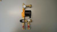 Witam ,proponuję zrobić to w ten sposób , pompę można wykorzystać tą co masz , wszystko ładnie pasuje 2 nakrętki + 2 uszczelki i dopinasz mieszacz do swojego rozdzielacza , w twoim przypadku woda w podłogówce krąży do momentu kiedy RTL się nie zamknie bo już ma za dużą tem. w takim przypadku jak przedstawiłem na zdjęciu zawór pilnuje aby tem zasilania podłogi była odpowiednia czyli nie przekraczała 47 st m , a pompa bezwzględu czy jest zamknięty zawór czy też otwarty cały czas miesza wodę , pozdrawiam