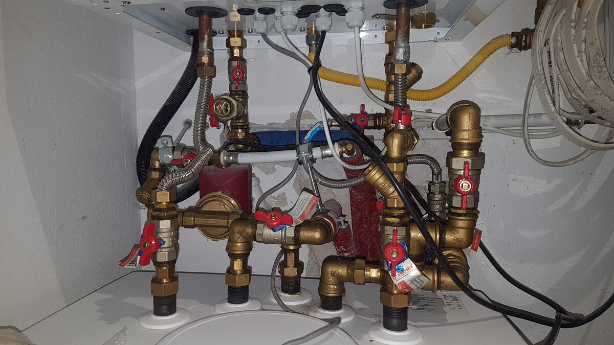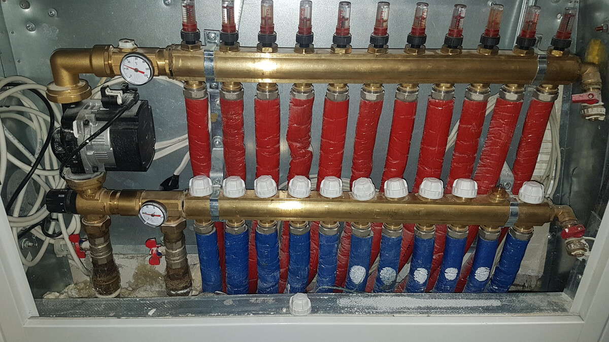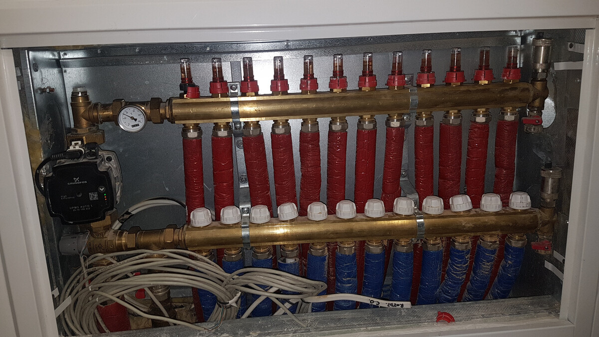 Powiedział bym na oko że do rozdzielaczy idą rury calowe ale nie jestem pewien teraz. Musiał bym zmierzyć jak będę w domu.