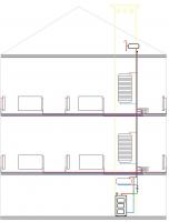I teraz po kolei: od kotła zamierzam wyjść rurami czernionymi do zaworu 4-drożnego (proszę o sugestię jaki ?) w celu ochrony powrotu kotła, od zaworu 4-D reszta + piony w miedzi fi28 do zbiornika wyrównawczego (proszę o sugestię jaka pojemność ? )umieszczonego na strychu i do rozdzielaczy (na każdym piętrze). Od rozdzielaczy do grzejników rura alupex Wavin fi 16 zatopiona w wylewce (rura w otulinie). Odległości od rozdzielaczy do poszczególnych grzejników od 4m najbliższy do ok.15m najdalszy. Podłączenie do grzejników boczne, gdyż takie zaostały już wcześniej zakupione. Na każdym grzejniku będzie zamontowany zawór termostatyczny oraz odcinający, oprócz grzejników łazienkowych gdzie będą tylko same zawory odcinające. Dodatkowo będzie zabudowany UPS do podtrzymywania napięcia w razie jakichkolwiek zaników. W niedalekiej przyszłości planuję wykonać również cyrkulację C.W.U. (jakieś sugestie ?). Bardzo proszę o sprawdzenie załączonego schematu i opinie o zaplanowanej instalacji. Z góry dziękuję i pozdrawiam.