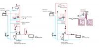 Witam Może ja dołoże swój projekt. Mam przerobić błędnie wykonaną instalację. Podstawowe błędy jakie ja widzę to: - obejścia pomp zainstalowane tak że zawory różnicowe są w poziomie - nieprawidłowy montaż naczynia wzbiorczego, przez co trzeba często dopuszczać wodę do układu, nie mówiąc o bezpieczeństwie - źle zamontowany zawór mieszjący do podłogówki ( w zasadzie nigdy zaworu tego typu nie instalowałem, zawór Herz Calis z głowicą z kapilarą), proszę o pomoc czy ktoś mógłby mi wytłumaczyć zasadę jego działania), zamieściłem schemat proponowany przez firmę Herz Problemem dla mnie jest poprowadzenie rury bezpieczeństwa do kominka ponieważ wiąże się to z kompletną demolką zabudowy kominka, myślę nad pozostawieniem kominka tak jak jest na schemacie z prawej strony z tym że bez rury bezpieczeństwa i chwilowym zakazu jego używania do czasu zamontowania go poprawnie ( inwestor chce go na wiosnę wymienić na inny i wtedy będzie okazja do tej przeróbki). Proszę o ewentualne porady. Pozdrawiam -