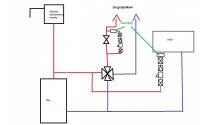 Proszę o wszelgie uwagi dotyczące poniższego schematu CO. Niedługo będę przymiezał się do jego wykonania. Piec 20kw będzie ogrzewał dom parterowy. Wszelkie elementy oprócz naczynia wzbiorczego znajdują się w piwnicy. Odległość między naczyniem wzbiorczym a kotłem to jakieś 3m a miedzy najwyzszym grzejnikiem 2m.