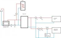 6. Zg i Zp to zawory 3-drogowe - sterowane siłownikiem. Na innych schematach właśnie takie widziałem. Pompę przeniosłem z powrotu na zasilanie skoro to błąd. Dorzuciłem pompę na CWU - faktycznie tam jej brakowało. Pierwotnie chciałem grzać od razu podłogę według założeń w moim pierwszym poście ale skomplikowałoby to niepotrzebnie układ. Po rozpaleniu w kominku i osięgnięciu temperatury otwarcia zaworu Z1 od razu ładoawałaby się podłoga. Nadwyżka miałaby iśc na bufor. W uproszczonym układzie wystarczy nagrzać samą górę bufora aby rozpocząć ładowanie podłogi. Jedyny minus to opóźnienie rozpoczęcia ładowania podłogi mniej więcej o ok 10 - 15 min. Komplikowanie układu (o którym pierwotnie myślałem) mija się z celem. Obecny komienk tak jak pisałem będzie miał 15 kW mocy wodnej. Chcę zastosować bufor min 1000 l. Na schemacie kotła elektrycznego nie umieściłem bo takie było moje pytanie - jak to zrobić?