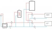 10. witam jako nowy użytkownik Za kilka tygodni wchodzi znajomy instalator na montaż kotłowni. Niestety nie ma czasu na koncepcje co do połączenia ponieważ specjalizuje się w bardziej wyrafinowanych instalacjach przemysłowych. Za instalacje CO w domach się nie zabiera. Mi obiecał, że wszystko poskłada według dostarczonego schematu. Załączam pierwszą podstawową wersję kotłowni. Proszę o sugestie jak ją dokończyć. Założenia są takie. Źródło ciepła: kominek z PW oraz kocioł elektryczny np. Kospel. Po rozpaleniu w kominku i osiągnięciu temperatury zaworu termostatycznego Z1 ma być możliwość ładowania podłogi i grzania grzejnikami (tylko 3 szt).W starym domu najpierw trzeba było wygrzać bufor aby ruszyła podłogówka). Nadmiar ciepła tzn powyżej zapotrzebowania podłogi i grzejników ma być magazynowany w buforze . Jakie w związku z tym zawory termostatyczne zastosować Zp i Zg (zawór podłogi, zawór grzejników)? Po wygaszeniu w kominku i spadku temp. poniżej nastawionej na Zp i Zg energia ma być brana z bufora.. W którym miejscu i jakie zastosować zawory? Dla "skomplikowania" układu chce do tego podłączyć kocioł elektryczny który uruchamiałby się w momencie kiedy w kominku wygasło i temperatura w buforze spadła poniżej zadanej. Jak to rozwiązać hydraulicznie. kocioł elektryczny ma pracować wyłącznie w obwodzie podłogówki.