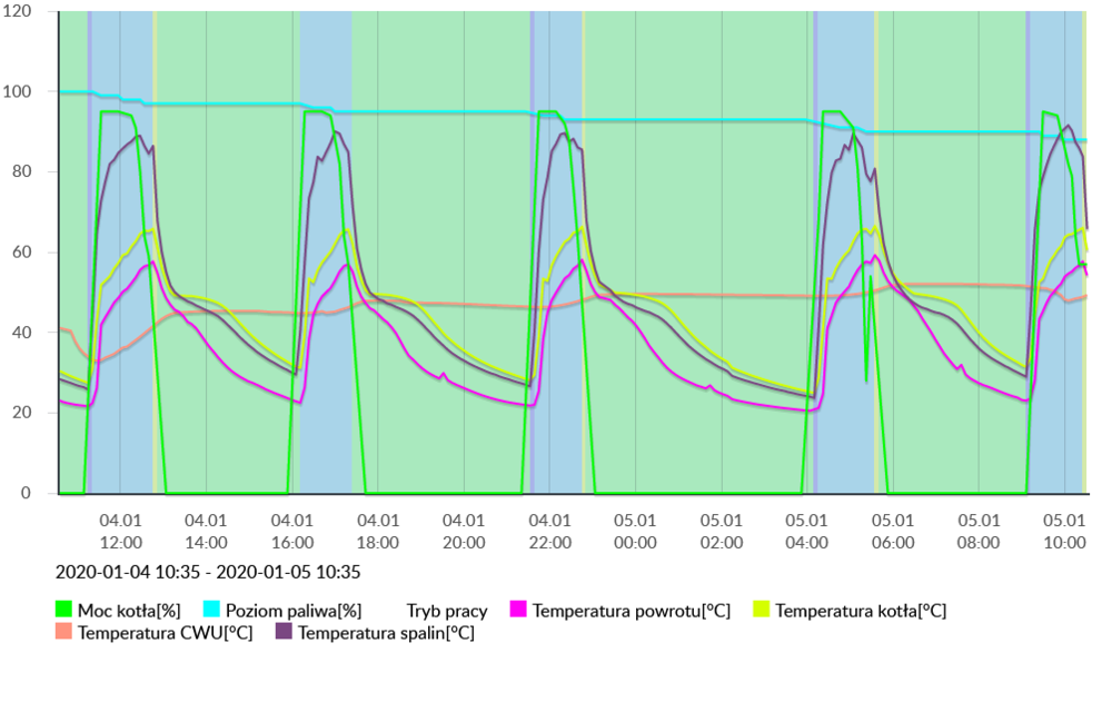 Witam szanowne grono. W tym roku przeszedłem na grzanie za pomocą termostatu pokojowego. Jestem zadowolony tylko pojawił się problem zimnych startów kotła. Rozwiązałem to tak że z odlotu pompy wyprowadziłem dodatkową rurą calową na powrót na kocioł . Problem kondensatu w kotle zniknął. Jak to wygląda można zobaczyć na wykresach. -