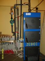 Wiem ze swojej praktyki budowy systemu co, ze koncepcja sterowania systemem przysparza sporo kłopotu. Dlatego chcę sie podzielić wlasnymi rozwiązaniami, może komuś sie przyda. Rozwiązanie jest bardzo proste, tanie i co najważniejsze w pelni funkcjonalne. Do rzeczy. Piecem steruje miarkownik ciągu ustawiony na 70 st, wachanie temp. około 2 st. W instalacje jest wpiety zawor czterodrogowy ustawiany recznie w zależności od temperatury zewnętrznej. Do sterowania pompką co wykorzystuje sterownik pokojowy polączony szeregowo z termostatem nastawnym, ktory mierzy temperature kotła. Termostat przy kotle ustawiony jest na 60 st, powyżej tej temperatury pozwala zalączyć pompke. Realizuje to również priorytet CWU (wymiennik pracuje na grawitacji). W tej konfiguracji piec wcale nie wygasa ponieważ przy wylączeniu pompki przy 60 st żar na ruszcie utrzymuje sie bardzo dlugo. Rano wstaje dokladam drwena i już sie pali. Zastanawiam sie jeszcze nad zalożeniem drugiego termostatu ustawionego na 95 st zabezpieczającego piec przed zagotowaniem. Koszt: Miarkownik ~ 100zł Termostat ~ 50zł Termostat pokojowy ~ 170 Pompa obiegowa -1 ~ ....