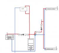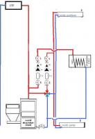 Witam ponownie mając na uwadze Wasze cenne porady "wypociłem" kolejny schemat. Zastanawia mnie jednak =, czy nie usystuować zaworu 4D niżej względem kotła. Czy odpływ z dolnego rozdzielacza może iść do góry? Czy nie lepiej zastosować tam zaworu 3D, a odpłuw z rozdzielaczy poprowadzić poza zaworem. pozdrawiam Rafał -