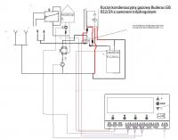 Połączenie jest poprzez zawór trójdrożny ( otoczony kółkiem) , działa on jako priorytet c.w.u. oraz ogranicza temperaturę c.w.u. Wszystko działa w automacie oprócz kotła gazowego załącz - wyłącz.