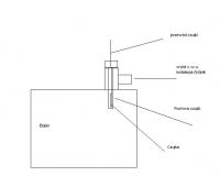 14. Paliwo groszek 8 - 32 mm Klapki uchylone na stałe, otwarcie jak na rys. Ponadto trochę się zmieniło (taki niespokojny duch),. po uszkodzeniu sterownika wymiana na nowy Auraton 1111,powrót do wentylatora. Doskonale się sprawdza z układem odpopielania (działają jednocześnie) Wentylator + układ odpopielania (sterowany czasowo). Działa to od ok. 14 dni. Problemem był bardzo duży wydatek powietrza ale poradziłem sobie. Tu rysunek wlotu powietrza wentylatora. Tak małe uchylenie wynika z zapotrzebowania powietrza oraz umożliwienia wentylatorowi pracę w odpowiedniej charakterystyce oraz umożliwia dość dokładna regulację wydajności. jest to tez podyktowane niewielkimi oporami w związku z brakiem popiołu na ruszcie.
