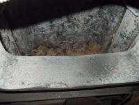 Witam po świętach panowie . a więc jak wróciłem rozkminiłem palenie w moim wiadrusie węglem z Wesołej . pali sie dobrze ale naprawde trzeba dokładnie poobserwowac i posustawiac podawanie powietrza bo to węgiel juz moim zdaniem wymagający . podczas odgazowania nie moge pozbyc sie białego dymu i juz zaprzestałem kombinacji , poprostu za mała komora nad paleniskiem aby gazy całe sie zdołały dopalic , płomien nad zasypem przez cały okres palenia , zasypuje około 8-10 cm ponizej dolnej krawędzi drzwiczek , szamot wywaliłem - nic nie dawał . zdjęcia po nocnym paleniu Ps . po odgazowaniu podaje nadal dość sporo PW do konca palenia , inaczej kocioł zasyfiony na maXa ,