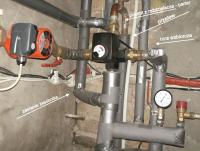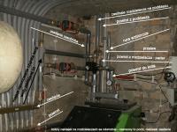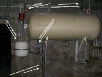 Witam, mam prośbe odnośnie sprawdzenie mojej instalacji czy nie ma poważniejszych błędów bo jakieś pewno są B) Instalacje robił fachowiec ale wiadomo że dzisiaj o dobrego fachowca trudno. Mój kocioł to Warmet 200 Ceramik 25 kW - chyba troche za duża moc - budynek 10x11 m 2 poziomy ogrzewane, dom ocieplony + zasobnik 140 l Zasobnik to dwupłaszczowy Galmet z podłączoną cyrkulacją - nie wiem jaka pompka tam jest Dwie pompy firmy SALMSON - jedna C.O NXL53-25P a druga C.W.U. SB04-15B W instalacji jest zawór 4-d z siłownikiem Honeywell żeliwny Naczynie wzbiorcze 25 l, naczynie do CWU AIRFIX 12 l - czy ten zbiornik jest bezobsługowy ? Zawory bezpieczeństwa Prescor 6 i 1,5 bar - 6 barowy zdaje sie ze jest przy zasobniku Całym układem sterują : Sterownik UNICONTROL MIX 07 (pompa CWU, pompa CO - na tym sterowniku ustawiony jest priorytet CWU, ochrona powrotu ), sterownik kotła - steruje pracą wentylatora, regulator pokojowy Auraton 2005 Economic - sterownik podpięty do UNICONTROL MIX 07 Miejsca umocowania czujników pokazane na zdjeciach (czujnik CWU zamocowany na zasobniku) Schemat instalacji: Reszta na zdjeciach Te rurki powinny być chyba z metalu i większej srednicy :huh: czy rura z powrotem nie jest za blisko wylotu dymu z kotła ? Na wysokosci czopucha na rurze powrotu jest czujnik - nie wiem czy nie będzie zafałszowań. Może trzeba by ten czujnik dać przy samym wlocie wody do kotła za miejscem wymieszania się powrotu z CO i zasobnika ? czy te zawory z filtrami nie sa czasami go góry nogami? Spełniaja dalej swoje zadanie? Ostatnia sprawa - czy w mojej instalacji dało by sie zainstalować zawór różnicowy i zrobić bajpass celem zabezpieczenia instalacji na wypadak braku zasilania? Czy takie rozwiązanie ma u mnie uzasadnienie?