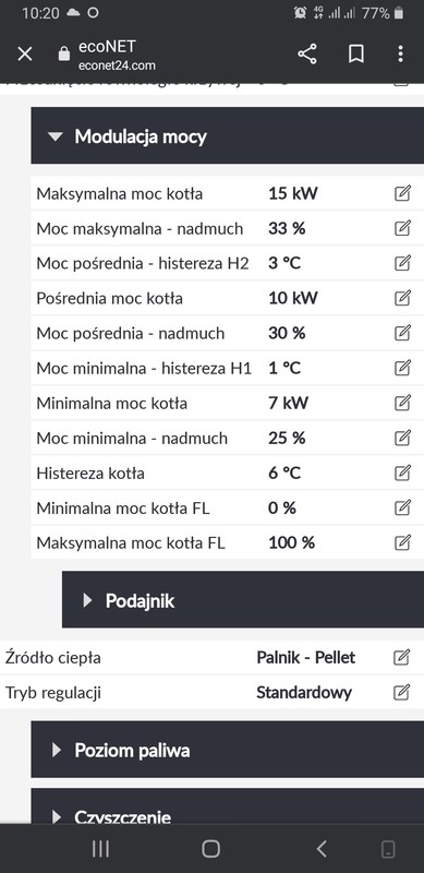 Super dziękuje za pomoc Zmieniłem to ustawienie zobaczymy jaki będzie efekt - czy zadziała. Widzę kolego ,że masz podobny metraż domu .Jakie masz spalanie dobowe Wersja modułu ecoNET: 3.2.3769 Istnieje nowa wersja oprogramowania (3.2.3810) Aktualizuj Wersja modułu A: 14.11.53 Wersja modułu Panel: 14.11.128 Czy to któreś z tego to wersja sterownika ? Ostatnią dobę miałem 5 rozpaleń w tym mam czyszczenie co 12 godzin i się wygasił , wiec -2 -