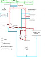 OK ale czy wtedy woda nie będzie krążyła tak jak zaznaczyłem na schemacie w przypadku grzania kominkiem? W przypadku grzania piecem mogę zamknąć zawory na obwodzie kominka i powinno być OK.