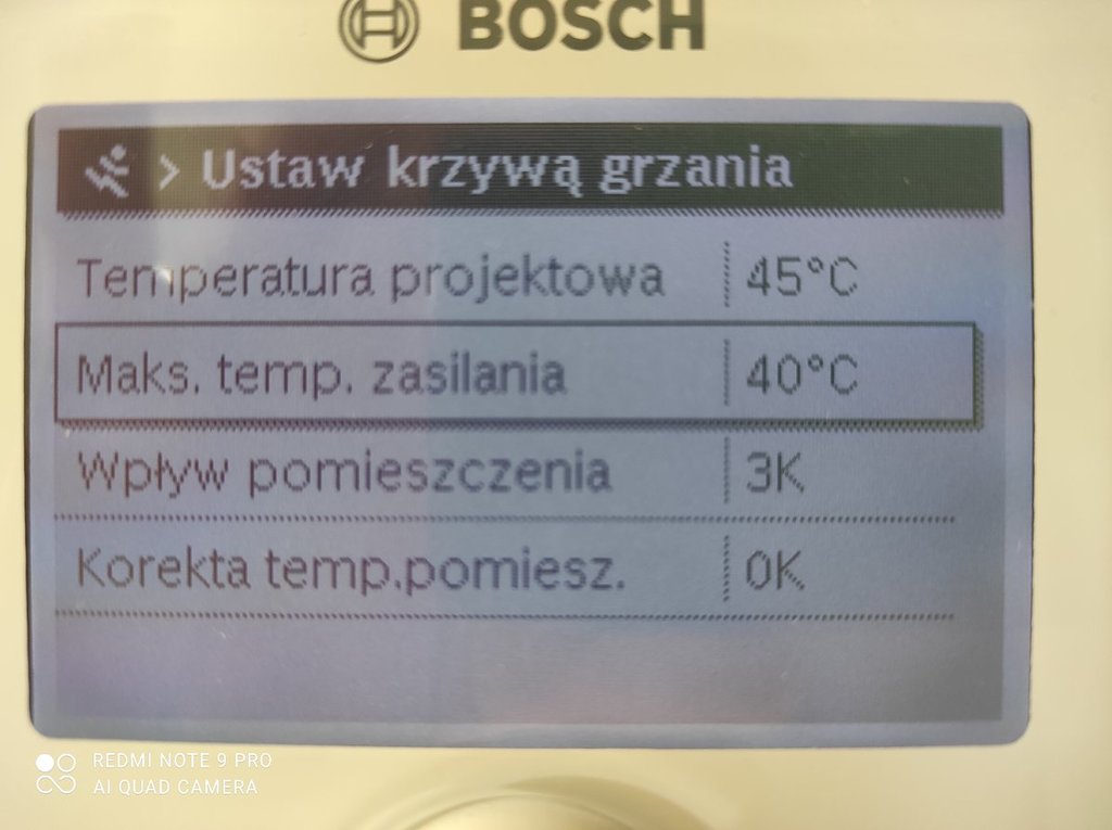 Ja mam podobny kocioł cerapur smart zsb 14-5c ( bardzo podobny sterownik ) i tez zużycie mnie zaskoczyło i tak jak ty nie mieszkam jeszcze, zużycie przy 15 stopniach w środku mam 5m3 gazu bez odpalonego pietra (grzejniki) Sporo poczytałem i wychodzi że pierwszy sezon nie jest miarodajny cały dom musi się przegrzać i ustabilizować. Wiec na razie nie panikuj, bo ja też zacząłem :) Zamieszkamy wtedy zobaczymy. Przy czym ja nie odpalam tej krzywej grzewczej tylko mam według temperatury pomieszczenia.