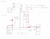 Witam, Bardzo proszę o rade przy wpięciu Kozy 7KW, umiejscowionej w saloniku na parterze. Mianowice koza owa będzie miała wężownicę, która ma tylko ogrzewać c.w.u. Proszę o podpowiedź czy schemat jest poprawny (schemat poniżej), chcę wykorzystać już istniejącą pompę P2 która obecnie ładuje zasobnik c.w.u. Czy jest to w ogóle poprawne? Za każde uwagi będę bardzo wdzięczny. pozdrawiam Bolikd