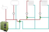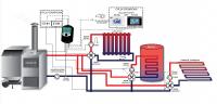 Drodzy forumowicze, Projekt instalacji CO załączony do projektu mojego domu został zmieniony na etapie adaptacji przez lokalnego projektanta, niestety z wieloma błędami, które po części sama skorygowałam. Najciekawsze "kwiatki" to chociażby grzejnik o wysokości 90cm pod oknem, gdzie parapet jest na wysokości 80cm oraz źle dobrana moc. Nie wspomnę o braku projektu kotłowni, ale ja już nie mam sił do tego człowieka, więc spróbuję ogarnąć temat samodzielnie. Przeliczyłam grzejniki i podłogówkę zgodnie z bilansem ciepła z projektu i z grubsza mam to opanowane, ale będę chciała się poradzić w kilku innych kwestiach. Mam taką sytuację (na razie ogólny zarys): - kocioł na pellety SAS Slim z palnikiem Multiflame, - bojler z płaszczem grzewczym, - na piętrze grzejniki w układzie rozdzielaczowym, - na parterze grzejniki w układzie rozdzielaczowym oraz podłogówka. Mam zatem 3 rozdzielacze + bojler, czyli w sumie 4 obiegi grzewcze. Dużo jest schematów kotłowni, którymi można się inspirować, ale zacznę temat od dyskusji nad schematem uproszczonym, który został pokazany w instrukcji sterownika kotła: Moje pytanie jest następujące: czy jest sens stosowania 3 zaworów 4-drogowych z siłownikami (na razie obydwa rozdzielacze grzejnikowe traktuję jako jeden obieg grzewczy)? Mam elektronikę, która to obsłuży, mam możliwość regulacji temperatury w każdym obiegu, no i mam ochronę temp. powrotu kotła. A wady? Cenę pomijam. Mam wprawdzie inny pomysł na tę instalację, ale najpierw chciałam poznać opinie na temat stosowania zaworów 4-drogowych w takim układzie. Pozdrawiam serdecznie :)