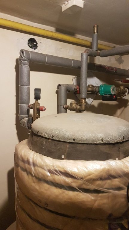 - jeżeli nie możesz osiągnąć temperatury to o żadnym buforowaniu i ladomacie nawet nie myśl.Do buforowania niezbędna zdecydowana nadwyżka mocy kotła.W poprzednim sezonie zlikwidowałem bufor 500 l -mimo,że był mały,by go dogrzać piec musiał na "niego pracować "dodatkowo.Pozostawiłem w układzie ladomat,ale u Ciebie tą rolę powinien pełnić zawór 4-drożny jeżeli jest sterowany.Jeżeli dobrze widzę na zdjęciu to posiadasz w układzie tylko pompę na powrocie z całego układu więc po jej uruchomieniu nie możesz sterować obiegiem CO i CWU niezależnie.W tej sytuacji przy małych oporach większość czynnika grzewczego "pójdzie" na CWU a na gzejniki dużo mniej. W mojej intalacji z piecem Buderus 18 kW-także zgazowujący drewno-oprócz ladomatu mam zainstalowaną pompę na zasilaniu CO i drugą na CWU uruchamiane sterownikiem w zależności od zadanej temperatury-czujniki.POnieważ mam mały zład wody w grzejnikach -konwektory-zamontowałem 220 l zbiornik ciepłej wody. Bez problemu utrzymuję na piecu temp. ok 80st C.ok 60 st na powrocie krótkiego obiegu zabezpiecza ladomat. Reasumując zastanawiający jest u Ciebie gwałtowny spadek temp.na piecu -za mała moc pieca w stosunku do mocy grzejników,duży zład wody.A jakie jest to drzewo 4 lata sezonowane?-np.brzoza po 4 latach to "papier". Pozdrawiam. -
