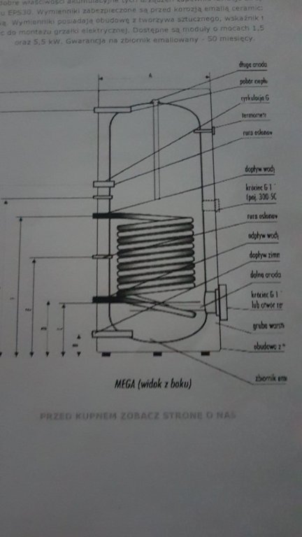ZBIORNIK zainstalowany jest w sieci pod ciśnieniem. Jednak okazało się , że piec -holgaz- jest wystarczający jedynie na zład ciepłej wody i zbiornik na ciepła wodę trzeba by dodatkowo ogrzewać. Ciepłą wodę mam z dwufunkcyjnego pieca na gaz. Zbiornik trzymałem na wszelki wypadek. W przypadku sprzedaży będzie wypięty w obecności kupującego emalia którą jest pokryty wewnątrz wyklucza zardzewienie a brak używania wyklucza zażelazenie. zbiornik jest ocieplony wełną mineralną i osadzony w w w osadzony Zbiornik osadzony jest w metalowaej MISIE co łatwo umożliwi wykonanie i założenie osłony z blachy. cena sprzedaży 600zł. tel kont. 518327496 Nowa Sól. -