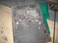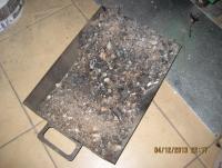 Poniżej zdjęcia zawartości popielnika po 2 dobach palenia (to co widać na pierwszym + drugim zdjęciu). Jak widać dużo koksu. Radzicie odkleić zaklejone nacięcia na długim, gęściej ponacinanym boku? Pierwsze zdjęcie to widok jak wyciągnąłem z kotła, drugie wygarnięta reszta. Gdyby spalał mi tak jak z przodu od drzwiczek to byłbym mega happy. Te koksy mnie wkurzają. Przy obecnych temperaturach jest ich po tygodniu ok pół 10litrowego wiadra. Niewielka strata ale zawsze jest. Aha - zauważyłem, że po uszczelnieniu palnika i związanym z tym zmniejszeniu nadmuchu wyraźnie spadła ilośc zanieczyszczeń w kotle. Przedtem co drugi dzień miałem sporo popiołu i sadzy z półek wymiennika do wygarnięcia - teraz prawie nic. Nad palnikiem na ruszczie wodnym położyłem spory kawałek blachy - w zasadzie gdy się pali to płomień omiata tylną ścianę kotła dopiero potem trafia na pierwszą skośną półkę.
