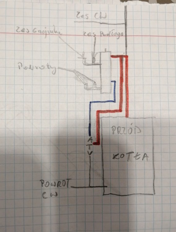 @sambor po zmierzeniu tego wszystkiego moge zalozyc je z przodu kotla tylko ze powroty i zasilanie ATV bedzie troche kręte ale inaczej to albo nie zmieszcze się z pompa na CO albo wg nie da sie powrotow wpiąć. Cos takiego by to wyglądało