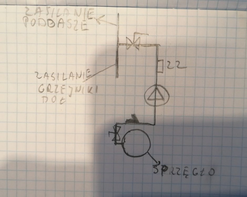 @sambor czy to by w niczym nie przeszkadzalo jakby bylo tyle zakretow za sprzeglem i tu gdzie odejscie zasilania na CO jedna idzie w gore rura na poddasze a druga w dol na parter czy to moglo by zostac czy tez bylo by zle? Widok z gory