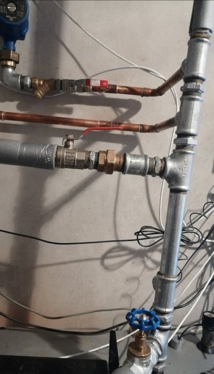Uzupełniłem wodę i odpalilem pompy i o dziwo już przy 50C idzie na grzejniki na dole a po chwili ciepłe.