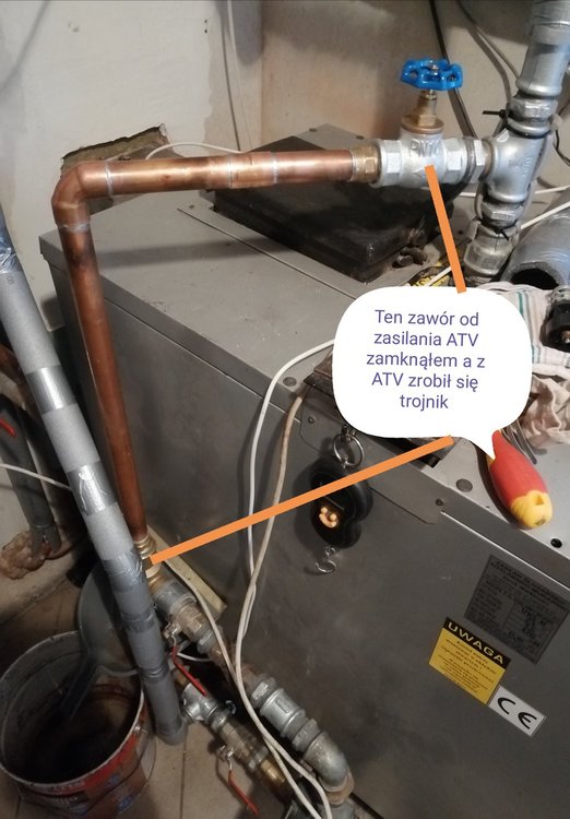 @cezar76 nie było wyjścia. Jutro wyjmuje wkładkę z zaworu zobaczę co będzie się działo a na zasilanie dałem zawór grzybkowy to go zamknę i będę miał jak przed założeniem atv. @sambor @gmaj22 i inni Koledzy ewentualnie można otworzyć delikatnie zasilanie zaworem do atv bez wkładki będzie troszkę się woda mieszala i powrót może delikatnie będzie wyższy. Ale na początek muszę sprawdzić jak będzie pracować bez wkładki atv.