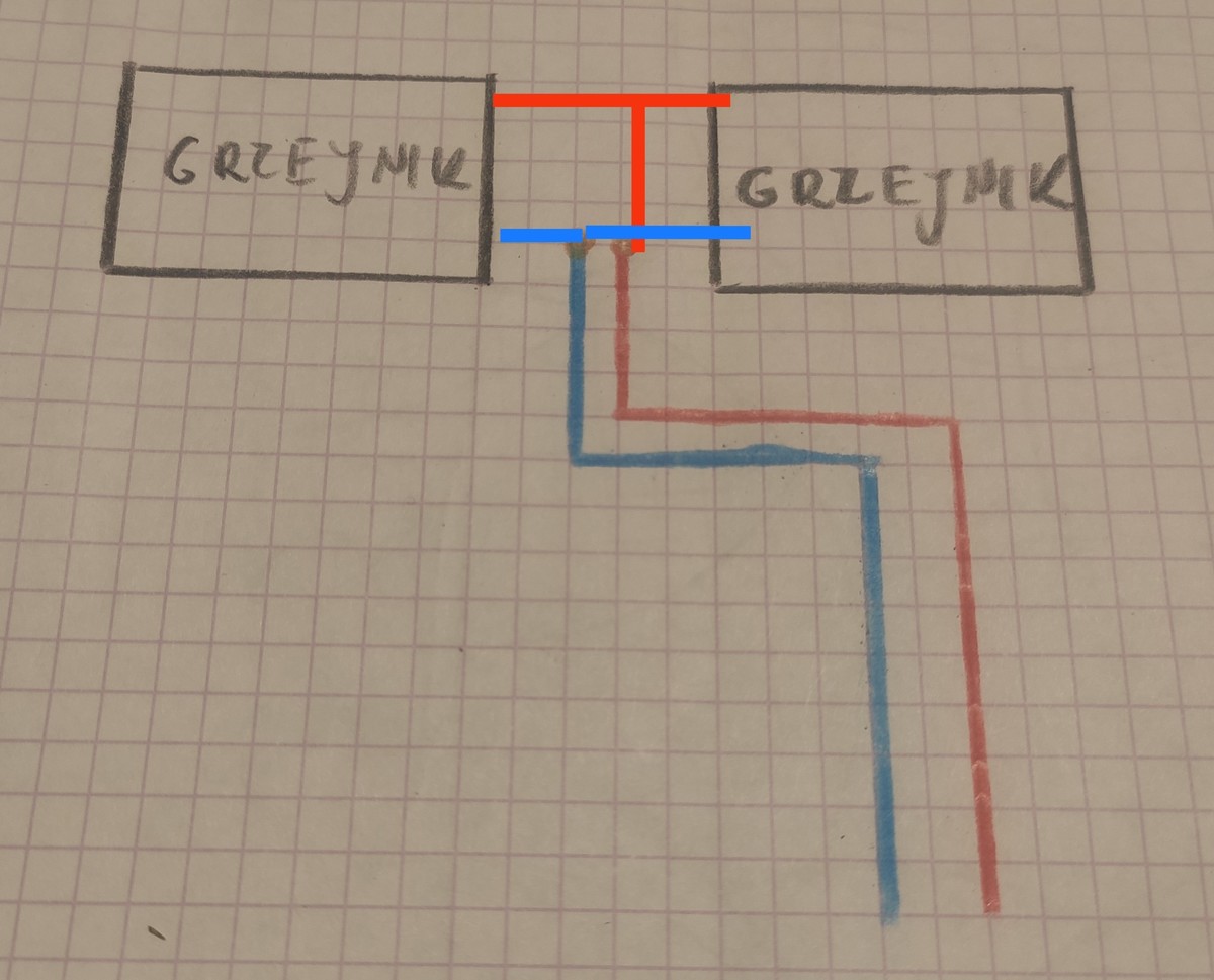 Mam do Was prośbę juz nie będę nowego wątku zakladal jak podłączyć te dwa grzejniki zeby to chodziło tak jak trzeba? Pomiędzy jednym a drugim jest ściana. Rurki wypuszczone z korkami 1/2cala. Z góry dziękuję. Dodam,ze to będą grzejniki aluminiowe po ok 3 lub 4 sztuki.