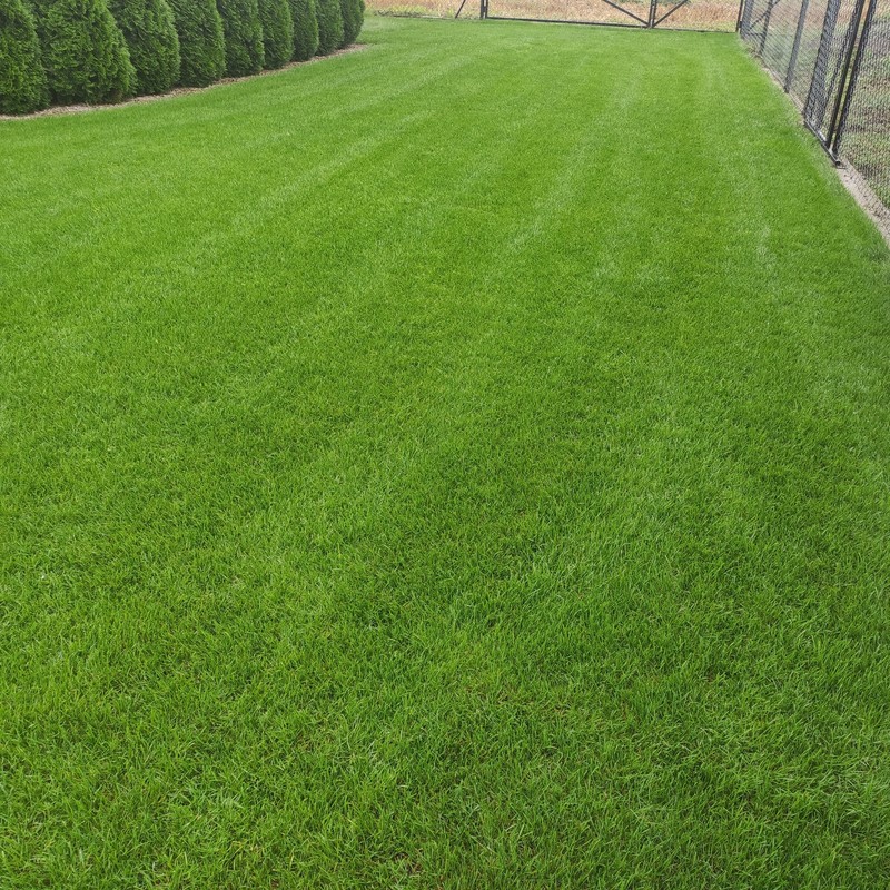 Jak dojdzie się do wprawy to wystarczy odpowiednio i regularnie nawozić od czasu do czasu podlać no i kosić. U mnie akurat kosi robot więc ja tam jestem zadowolony mega. Wykosze krawędzie i zrobię paski jak mam ochotę coś zmienić. Niedawno było tak a po zabiegach wygląda tak malutka różnica jest. Pracy trochę było ale warto było nie ma co.