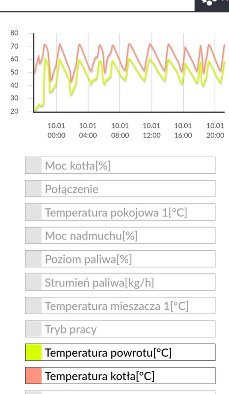 U mnie jak kotłowa i podłogowa chodzą razem to 1/3 spalanie większe. Ale wtedy wykresy dużo lepsze 😉. A masz podłączona podłogę i kotłowa pod sterownik? Czy w gniazdo bezpośrednio? -