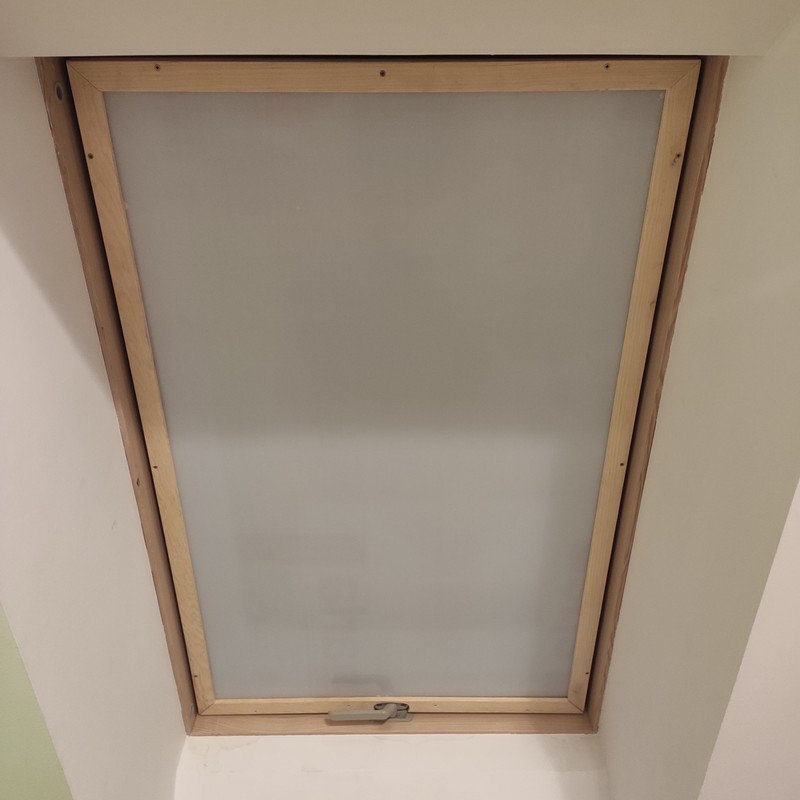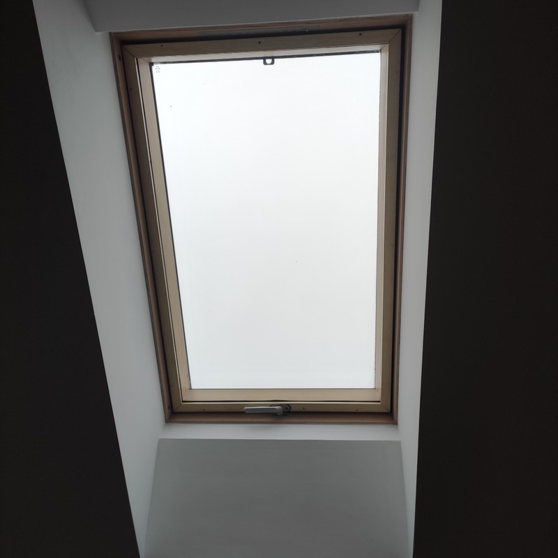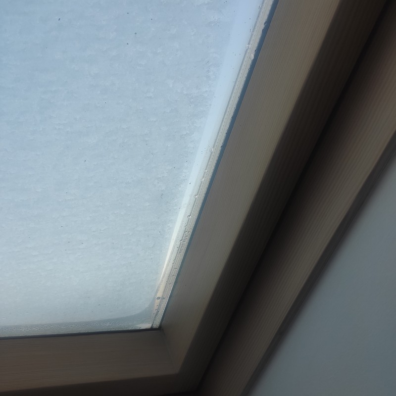 Witam. Może komuś się przyda. Okna Fakro i przez 10 lat problemy z nimi bo ciągle przy temperaturach oscylujących około 0 i niżej zaczynała zbierać się woda na szybach a przy niższych temperaturach, nawet był lód. Ciągle zacieki na glifach i tym podobne. Rozwiązałem, problem w ten sposób, że dałem od wewnątrz do ramy okna dodatkowa szybę w moim przypadku jest to poliwęglan lity na uszczelce plus listwy. Moze nie wygląda idealnie ale za to mam problem z głowy. Klatka schodowa. Tu przymiarka u córki w pokoju. Tak wyglądała sytuacja bez poliweglanu oraz 0 C na zewnątrz.