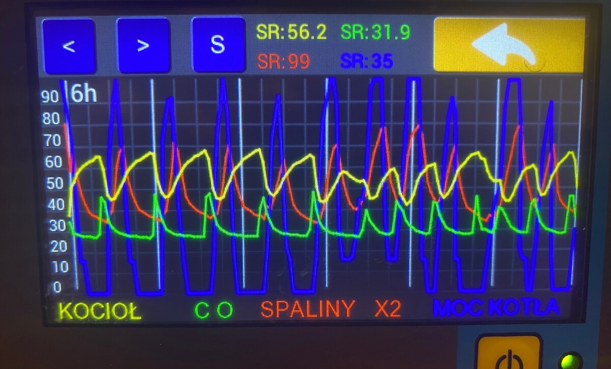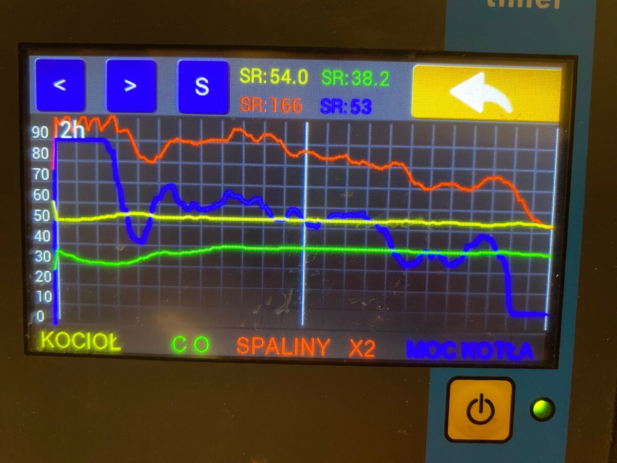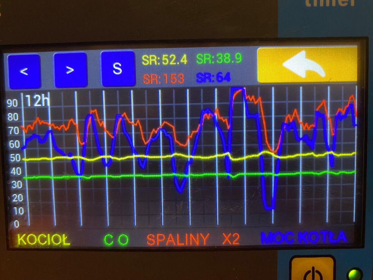 Szanowni, pomóżcie proszę bo już nie wiem co się wyprawia. Kocioł szaleje (załączone zdjęcia) Pracuje „skokami” jak widać na wykresie. Nie rozumiem czemu sterownik dopuszcza do wychłodzenia kotła nawet do 35*C a potem goni palnikiem do odcięcia uzyskując np. 78*C potem temperatura spada i tak dalej. Zawór 4drogowy zamyka na mały obieg a potem otwiera na CO. co zrobić? -