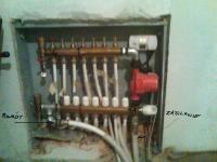 Mój problem dotyczy rozdzielacza a dokładniej mówiąc zamontowanego przy nim zaworu trzy drożnego z kapilarą. Wszystko jest ok jeżeli różnica pomiędzy temperaturą na kotle a tą zadana na głowicy przy rozdzielaczu jest około 5 stopni zawór działa ok ale gdy ta różnica jest już powyżej 10 stopni zawór otwiera się na powrót i tak już zostaje do momentu aż temperatura na kotle spadnie do zadanej na głowicy. ( Co przy piecu na ekogroszek może trwać wieczność bo automatycznie jak ciepła woda przestaje być odbierana to ta dzięki podtrzymaniu raczej nie spada ) Powiecie że mogę ustawić niska temperaturę na kotle i po sprawie. Ale co z grzejnikami tu fajnie było by mieć około 60st a na rozdzielaczu max 45. Może mój instalator coś spieprzył dlatego załączam fotkę dzięki której ktoś mający pojęcie w temacie podpowie mi co jest nie tak bo mnie już powoli zaczyna trafiać sz......