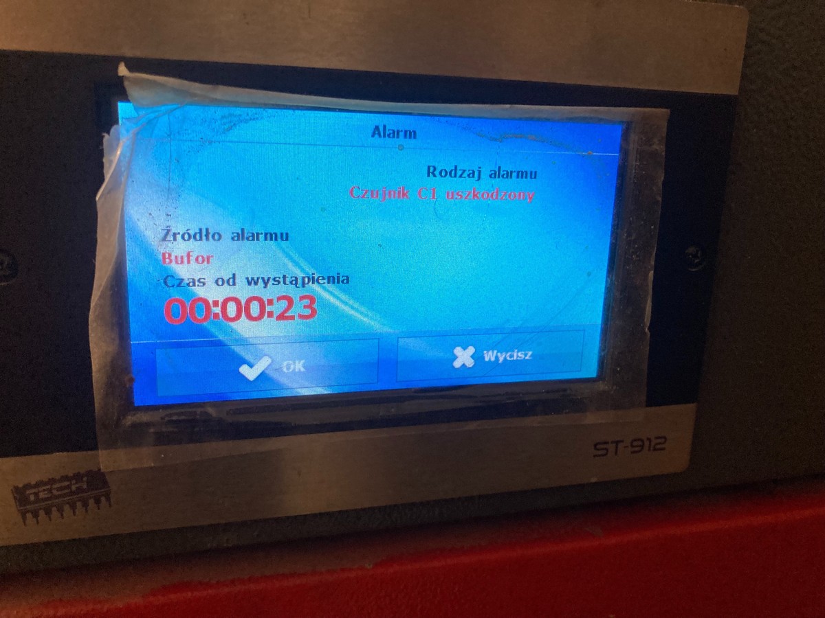 Sprawa się wyjaśniła ktoś pogrzebał w menu włączył bufor i zaczęło sypać alarmem czujnika bo fizycznie nie ma tam żadnego bufora zabudowanego ,układ współpracuje z podłogówką.